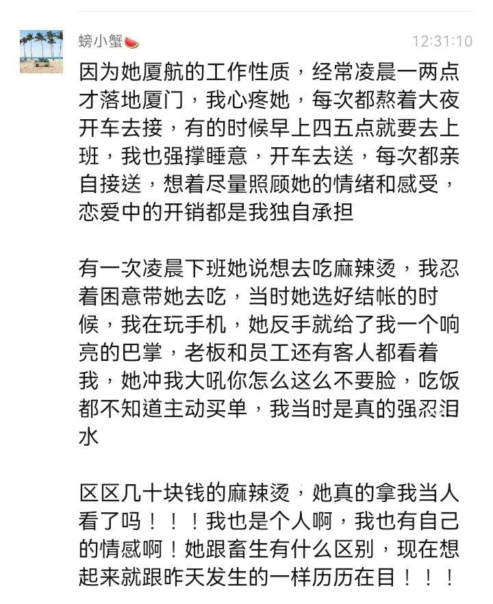 厦航气质空姐【艾淼】长期PUA及家暴富二代男友 恋爱期间竟多次出轨 男友忍无可忍曝光其小视频
